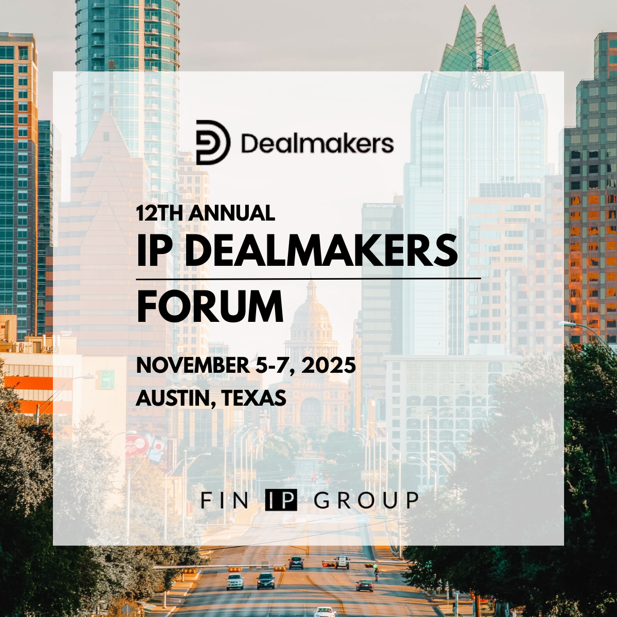 FIN IP Group President, Derek de Laat, will be attending the 12th Annual IP Dealmakers Forum in Austin, Texas, from November 5–7.